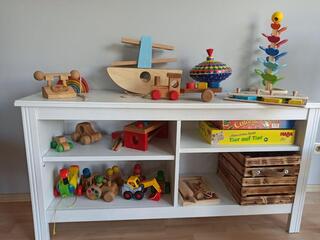 Bausteine, Kochtöpfe, Puppen und Zubehör, Fahrzeuge, Murmelbahnen....