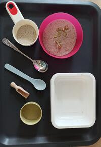 Die Freispielzeit bietet auch Raum für individuelles Lernen z. B. über Aktionstabletts (siehe Bild links oben) oder intensives Beschäftigen mit unterschiedlichen Materialien. In dieser Zeit können sich die Kinder auch mit Kleinprojekten, die nach Interesse der Kinder ausgewählt werden, beschäftigen. Aktionstabletts werden nach den Interessen der Kinder zusammengestellt und angeboten. Sortieren, umfüllen oder auch erste Übungen mit einer Schere sind sehr oft im Fokus der Kinder.